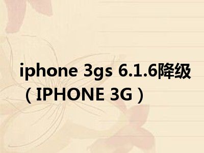 导读 相信目前很多小伙伴对于IPHONE 3G都比较感兴趣,那么小搜今天在网上也是收集了一些与IPHONE 3G相关的信息来分享给大家,希望能够帮助到大...