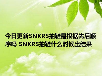 目前大家应该是对SNKRS抽鞋是根据先后顺序吗 SNKRS抽鞋什么时候出结果比较感兴趣的,所以今天小编CC就来为大家整理了一些关于SNKRS抽鞋是根据先后顺序吗 SNKRS抽鞋什么时候出结果方面的相关知识来分享给大家,希望大家会喜欢哦。