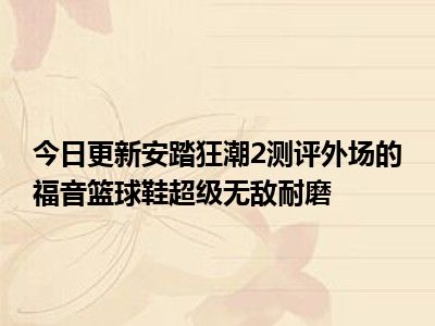 目前大家应该是对安踏狂潮2测评:外场的福音篮球鞋,超级无敌耐磨!比较感兴趣的,所以今天小编CC就来为大家整理了一些关于安踏狂潮2测评:外场的福音篮球鞋,超级无敌耐磨!方面的相关知识来分享给大家,希望大家会喜欢哦。