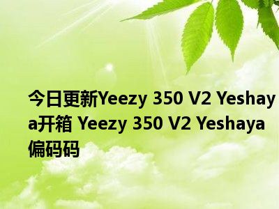 目前大家应该是对Yeezy 350 V2 “Yeshaya”开箱 Yeezy 350 V2 “Yeshaya”偏码码比较感兴趣的,所以今天小编CC就来为大家整理了一些关于Yeezy 350 V2 “Yeshaya”开箱 Yeezy 350 V2 “Yeshaya”偏码码方面的相关知识来分享给大家,希望大家会喜欢哦。