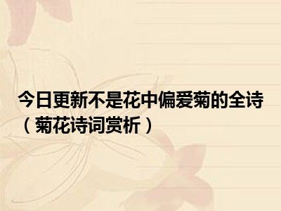 目前上述的内容应该能够为大家解答出大家对于不是花中偏爱菊的全诗(菊花诗词赏析)的疑惑了,所以如果大家还想要了解更多的知识内容,也可以关注本站其他文章进行了解哦。