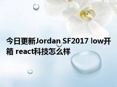 目前大家应该是对Jordan SF2017 low开箱 react科技怎么样比较感兴趣的,所以今天小编CC就来为大家整理了一些关于Jordan SF2017 low开箱 react科技怎么样方面的相关知识来分享给大家,希望大家会喜欢哦。