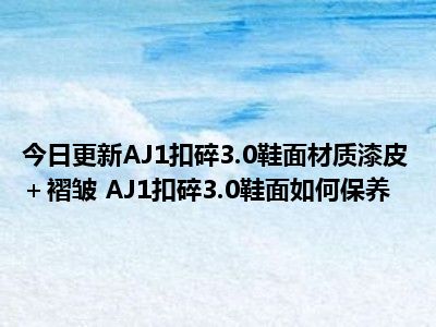 目前大家应该是对AJ1扣碎3.0鞋面材质漆皮+褶皱 AJ1扣碎3.0鞋面如何保养比较感兴趣的,所以今天小编CC就来为大家整理了一些关于AJ1扣碎3.0鞋面材质漆皮+褶皱 AJ1扣碎3.0鞋面如何保养方面的相关知识来分享给大家,希望大家会喜欢哦。