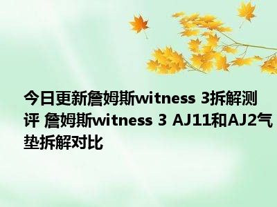 目前大家应该是对詹姆斯witness 3拆解测评 詹姆斯witness 3 AJ11和AJ2气垫拆解对比比较感兴趣的,所以今天小编CC就来为大家整理了一些关于詹姆斯witness 3拆解测评 詹姆斯witness 3 AJ11和AJ2气垫拆解对比方面的相关知识来分享给大家,希望大家会喜欢哦。