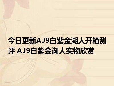 目前大家应该是对AJ9白紫金湖人开箱测评 AJ9白紫金湖人实物欣赏比较感兴趣的,所以今天小编CC就来为大家整理了一些关于AJ9白紫金湖人开箱测评 AJ9白紫金湖人实物欣赏方面的相关知识来分享给大家,希望大家会喜欢哦。