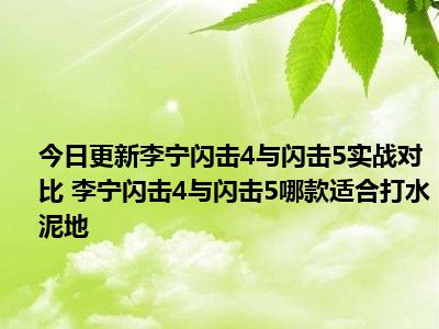 目前大家应该是对李宁闪击4与闪击5实战对比 李宁闪击4与闪击5哪款适合打水泥地比较感兴趣的,所以今天小编CC就来为大家整理了一些关于李宁闪击4与闪击5实战对比 李宁闪击4与闪击5哪款适合打水泥地方面的相关知识来分享给大家,希望大家会喜欢哦。