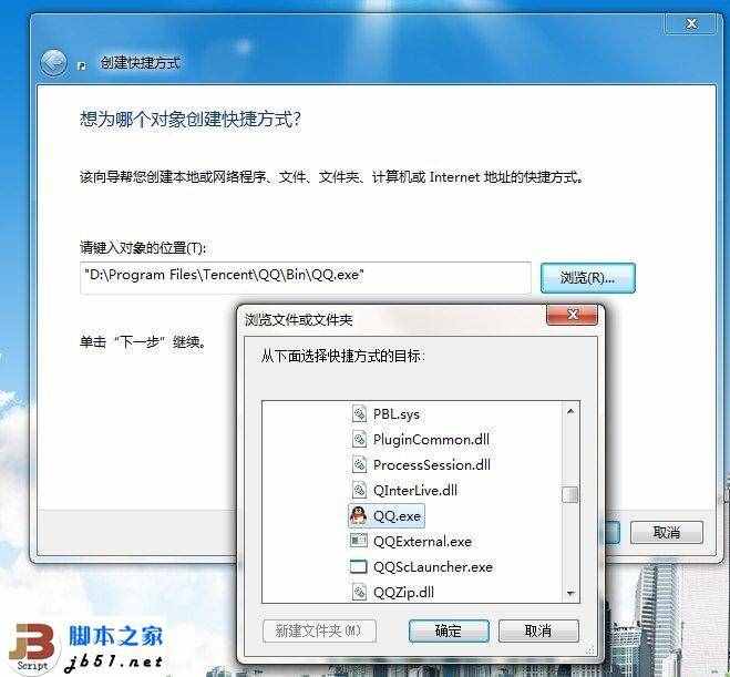 (图5)在桌面空白处点“右键-新建-快捷方式”,然后点击“浏览”,找到你QQ的安装位置,找到QQ的执行文件,点确实,下一步(如下图6)。然后给这个快捷方式输入一个名称,这个名称可以随便起,比如我们就起“腾讯QQ”,输入完最后点完成(如下图7)。