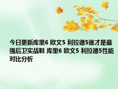 目前大家应该是对库里6 欧文5 利拉德5谁才是最强后卫实战鞋 库里6 欧文5 利拉德5性能对比分析比较感兴趣的,所以今天小编CC就来为大家整理了一些关于库里6 欧文5 利拉德5谁才是最强后卫实战鞋 库里6 欧文5 利拉德5性能对比分析方面的相关知识来分享给大家,希望大家会喜欢哦。