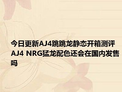 目前大家应该是对AJ4“跳跳龙”静态开箱测评 AJ4 NRG猛龙配色还会在国内发售吗比较感兴趣的,所以今天小编CC就来为大家整理了一些关于AJ4“跳跳龙”静态开箱测评 AJ4 NRG猛龙配色还会在国内发售吗方面的相关知识来分享给大家,希望大家会喜欢哦。