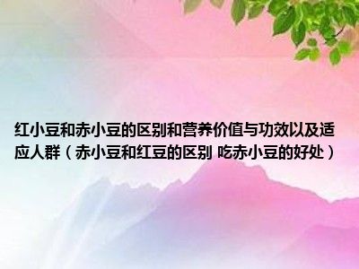 目前大家应该是对赤小豆和红豆的区别 吃赤小豆的好处比较感兴趣的,所以今天小编CC就来为大家整理了一些关于赤小豆和红豆的区别 吃赤小豆的好处方面的相关知识来分享给大家,希望大家会喜欢哦。