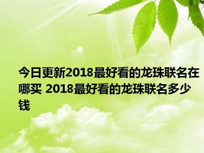 目前大家应该是对2018最好看的龙珠联名在哪买 2018最好看的龙珠联名多少钱比较感兴趣的,所以今天小编CC就来为大家整理了一些关于2018最好看的龙珠联名在哪买 2018最好看的龙珠联名多少钱方面的相关知识来分享给大家,希望大家会喜欢哦。