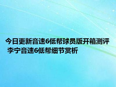 目前大家应该是对音速6低帮球员版开箱测评 李宁音速6低帮细节赏析比较感兴趣的,所以今天小编CC就来为大家整理了一些关于音速6低帮球员版开箱测评 李宁音速6低帮细节赏析方面的相关知识来分享给大家,希望大家会喜欢哦。