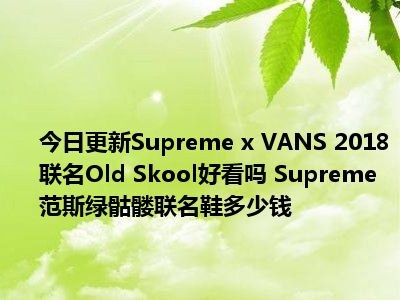 目前大家应该是对Supreme x VANS 2018联名Old Skool好看吗 Supreme范斯绿骷髅联名鞋多少钱比较感兴趣的,所以今天小编CC就来为大家整理了一些关于Supreme x VANS 2018联名Old Skool好看吗 Supreme范斯绿骷髅联名鞋多少钱方面的相关知识来分享给大家,希望大家会喜欢哦。