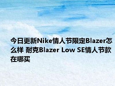 目前大家应该是对Nike情人节限定Blazer怎么样 耐克“Blazer Low SE”情人节款在哪买比较感兴趣的,所以今天小编CC就来为大家整理了一些关于Nike情人节限定Blazer怎么样 耐克“Blazer Low SE”情人节款在哪买方面的相关知识来分享给大家,希望大家会喜欢哦。