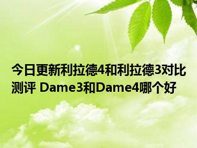 目前大家应该是对利拉德4和利拉德3对比测评 Dame3和Dame4哪个好比较感兴趣的,所以今天小编CC就来为大家整理了一些关于利拉德4和利拉德3对比测评 Dame3和Dame4哪个好方面的相关知识来分享给大家,希望大家会喜欢哦。