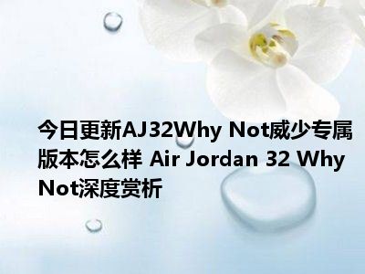 目前大家应该是对AJ32“Why Not”威少专属版本怎么样 Air Jordan 32 “Why Not”深度赏析比较感兴趣的,所以今天小编CC就来为大家整理了一些关于AJ32“Why Not”威少专属版本怎么样 Air Jordan 32 “Why Not”深度赏析方面的相关知识来分享给大家,希望大家会喜欢哦。