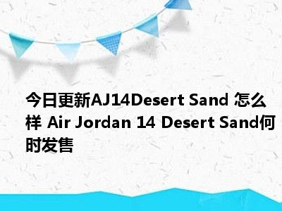 目前大家应该是对AJ14“Desert Sand” 怎么样 Air Jordan 14 “Desert Sand”何时发售比较感兴趣的,所以今天小编CC就来为大家整理了一些关于AJ14“Desert Sand” 怎么样 Air Jordan 14 “Desert Sand”何时发售方面的相关知识来分享给大家,希望大家会喜欢哦。