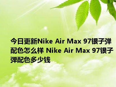 目前大家应该是对Nike Air Max 97银子弹配色怎么样 Nike Air Max 97银子弹配色多少钱比较感兴趣的,所以今天小编CC就来为大家整理了一些关于Nike Air Max 97银子弹配色怎么样 Nike Air Max 97银子弹配色多少钱方面的相关知识来分享给大家,希望大家会喜欢哦。