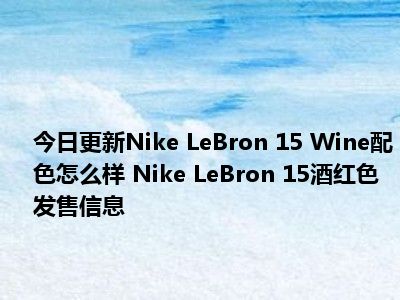 目前大家应该是对Nike LeBron 15 “Wine”配色怎么样 Nike LeBron 15酒红色发售信息比较感兴趣的,所以今天小编CC就来为大家整理了一些关于Nike LeBron 15 “Wine”配色怎么样 Nike LeBron 15酒红色发售信息方面的相关知识来分享给大家,希望大家会喜欢哦。