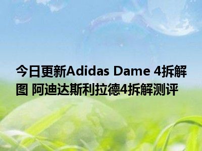 目前大家应该是对Adidas Dame 4拆解图 阿迪达斯利拉德4拆解测评比较感兴趣的,所以今天小编CC就来为大家整理了一些关于Adidas Dame 4拆解图 阿迪达斯利拉德4拆解测评方面的相关知识来分享给大家,希望大家会喜欢哦。