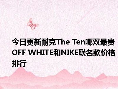 目前大家应该是对耐克“The Ten”哪双最贵 OFF WHITE和NIKE联名款价格排行比较感兴趣的,所以今天小编CC就来为大家整理了一些关于耐克“The Ten”哪双最贵 OFF WHITE和NIKE联名款价格排行方面的相关知识来分享给大家,希望大家会喜欢哦。