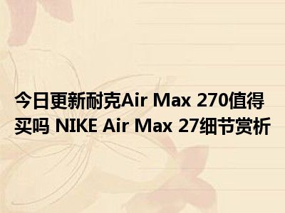 目前大家应该是对耐克Air Max 270值得买吗 NIKE Air Max 27细节赏析比较感兴趣的,所以今天小编CC就来为大家整理了一些关于耐克Air Max 270值得买吗 NIKE Air Max 27细节赏析方面的相关知识来分享给大家,希望大家会喜欢哦。