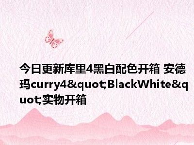 目前大家应该是对库里4黑白配色开箱 安德玛curry4"Black/White"实物开箱比较感兴趣的,所以今天小编CC就来为大家整理了一些关于库里4黑白配色开箱 安德玛curry4"Black/White"实物开箱方面的相关知识来分享给大家,希望大家会喜欢哦。