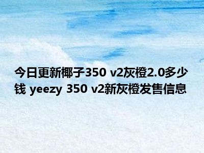 目前大家应该是对椰子350 v2灰橙2.0多少钱 yeezy 350 v2新灰橙发售信息比较感兴趣的,所以今天小编CC就来为大家整理了一些关于椰子350 v2灰橙2.0多少钱 yeezy 350 v2新灰橙发售信息方面的相关知识来分享给大家,希望大家会喜欢哦。