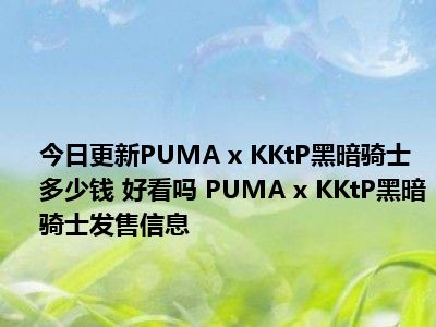 目前大家应该是对PUMA x KKtP黑暗骑士多少钱 好看吗 PUMA x KKtP黑暗骑士发售信息比较感兴趣的,所以今天小编CC就来为大家整理了一些关于PUMA x KKtP黑暗骑士多少钱 好看吗 PUMA x KKtP黑暗骑士发售信息方面的相关知识来分享给大家,希望大家会喜欢哦。