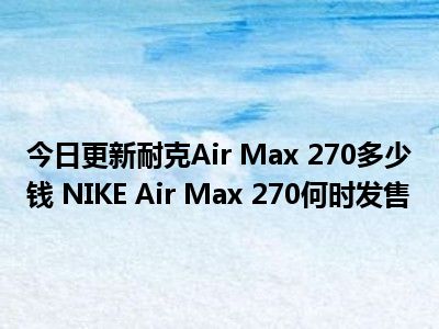 目前大家应该是对耐克Air Max 270多少钱 NIKE Air Max 270何时发售比较感兴趣的,所以今天小编CC就来为大家整理了一些关于耐克Air Max 270多少钱 NIKE Air Max 270何时发售方面的相关知识来分享给大家,希望大家会喜欢哦。