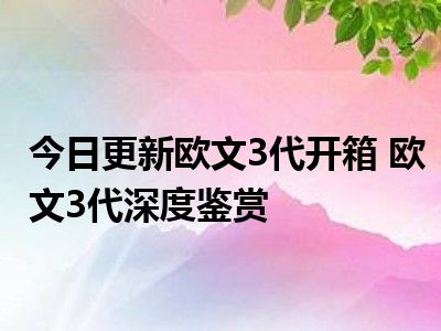 目前大家应该是对欧文3代开箱 欧文3代深度鉴赏比较感兴趣的,所以今天小编CC就来为大家整理了一些关于欧文3代开箱 欧文3代深度鉴赏方面的相关知识来分享给大家,希望大家会喜欢哦。