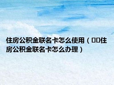 导读 目前大家应该是对住房公积金联名卡怎么办理比较感兴趣的,所以今天好房网小编CC就来为大家整理了一些关于住房公积金联名卡怎么办理