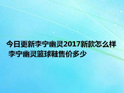 目前大家应该是对李宁幽灵2017新款怎么样 李宁幽灵篮球鞋售价多少比较感兴趣的,所以今天小编CC就来为大家整理了一些关于李宁幽灵2017新款怎么样 李宁幽灵篮球鞋售价多少方面的相关知识来分享给大家,希望大家会喜欢哦。