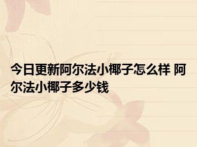目前大家应该是对阿尔法小椰子怎么样 阿尔法小椰子多少钱比较感兴趣的,所以今天小编CC就来为大家整理了一些关于阿尔法小椰子怎么样 阿尔法小椰子多少钱方面的相关知识来分享给大家,希望大家会喜欢哦。