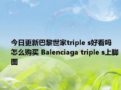 目前大家应该是对巴黎世家triple s好看吗 怎么购买 Balenciaga triple s上脚图比较感兴趣的,所以今天小编CC就来为大家整理了一些关于巴黎世家triple s好看吗 怎么购买 Balenciaga triple s上脚图方面的相关知识来分享给大家,希望大家会喜欢哦。