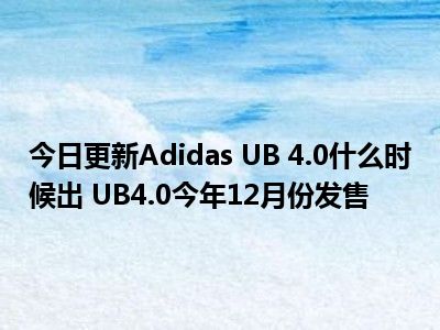 目前大家应该是对Adidas UB 4.0什么时候出 UB4.0今年12月份发售比较感兴趣的,所以今天小编CC就来为大家整理了一些关于Adidas UB 4.0什么时候出 UB4.0今年12月份发售方面的相关知识来分享给大家,希望大家会喜欢哦。