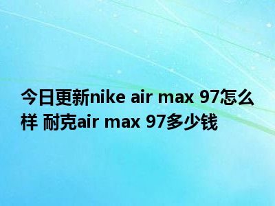 目前大家应该是对nike air max 97怎么样 耐克air max 97多少钱比较感兴趣的,所以今天小编CC就来为大家整理了一些关于nike air max 97怎么样 耐克air max 97多少钱方面的相关知识来分享给大家,希望大家会喜欢哦。