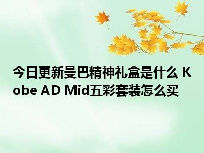 目前大家应该是对曼巴精神礼盒是什么 Kobe AD Mid五彩套装怎么买比较感兴趣的,所以今天小编CC就来为大家整理了一些关于曼巴精神礼盒是什么 Kobe AD Mid五彩套装怎么买方面的相关知识来分享给大家,希望大家会喜欢哦。