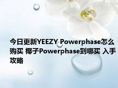 目前大家应该是对YEEZY Powerphase怎么购买 椰子Powerphase到哪买 入手攻略比较感兴趣的,所以今天小编CC就来为大家整理了一些关于YEEZY Powerphase怎么购买 椰子Powerphase到哪买 入手攻略方面的相关知识来分享给大家,希望大家会喜欢哦。