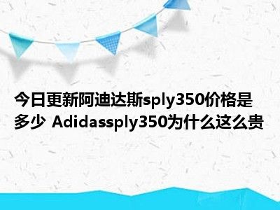 目前大家应该是对阿迪达斯sply350价格是多少 Adidassply350为什么这么贵比较感兴趣的,所以今天小编CC就来为大家整理了一些关于阿迪达斯sply350价格是多少 Adidassply350为什么这么贵方面的相关知识来分享给大家,希望大家会喜欢哦。