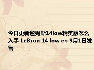 目前大家应该是对詹姆斯14low精英版怎么入手 LeBron 14 low ep 9月1日发售比较感兴趣的,所以今天小编CC就来为大家整理了一些关于詹姆斯14low精英版怎么入手 LeBron 14 low ep 9月1日发售方面的相关知识来分享给大家,希望大家会喜欢哦。
