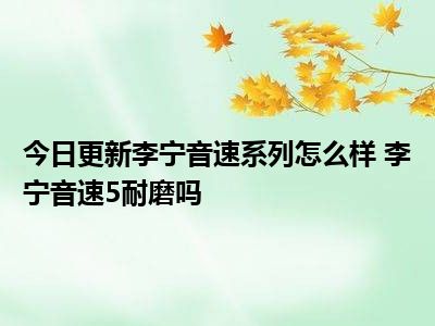 目前大家应该是对李宁音速系列怎么样 李宁音速5耐磨吗比较感兴趣的,所以今天小编CC就来为大家整理了一些关于李宁音速系列怎么样 李宁音速5耐磨吗方面的相关知识来分享给大家,希望大家会喜欢哦。