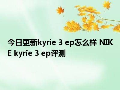 目前大家应该是对kyrie 3 ep怎么样 NIKE kyrie 3 ep评测比较感兴趣的,所以今天小编CC就来为大家整理了一些关于kyrie 3 ep怎么样 NIKE kyrie 3 ep评测方面的相关知识来分享给大家,希望大家会喜欢哦。