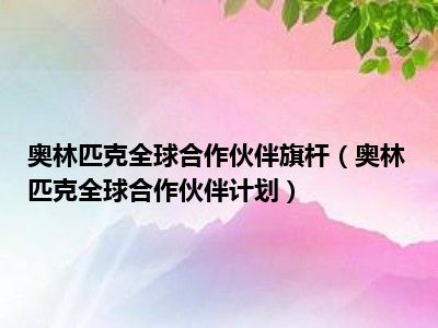 导读目前是有很多朋友们对于奥林匹克全球合作伙伴计划这个信息比较感兴趣,那么小编也是收集了一些奥林匹克全球合作伙伴计划相关的信息来分享给...