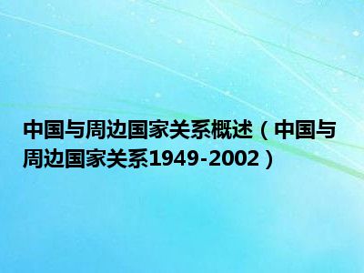 导读目前是有很多朋友们对于中国与周边国家关系1949-2002这个信息比较感兴趣,那么小编也是收集了一些中国与周边国家关系1949-2002相关的信息来...
