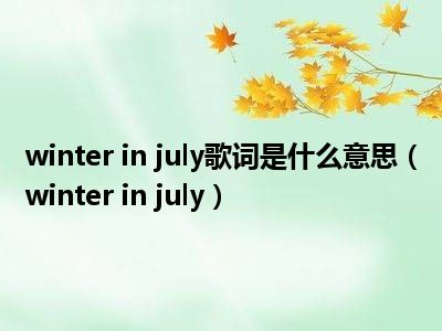 导读 目前是有很多朋友们对于winter in july这个信息比较感兴趣,那么小编也是收集了一些winter in july相关的信息来分享给大家,希望你会喜...
