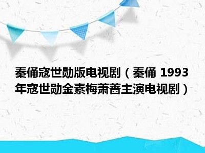 1、1994年台湾华视电视剧《秦俑》,改编自香港女作家李碧华小说《秦俑》,由台湾著名导演李岳峰执导,寇世勋、金素梅、童安格、萧蔷等主演。