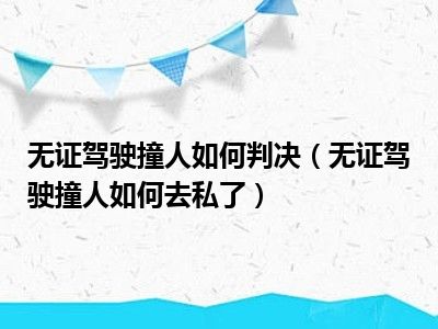 目前大家应该是对无证驾驶撞人如何去私了比较感兴趣的,所以今天CC就来为大家整理了一些关于无证驾驶撞人如何去私了方面的相关知识来分享给大家,希望大家会喜欢哦。