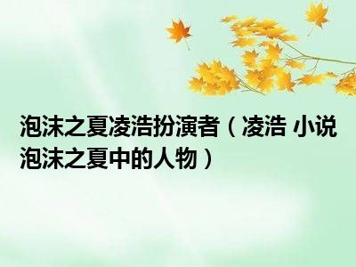 1、凌浩,小说《泡沫之夏》中的人物,电视剧《泡沫之夏》中的人物。