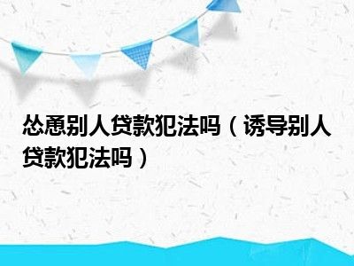 目前大家应该是对诱导别人贷款犯法吗比较感兴趣的,所以今天CC就来为大家整理了一些关于诱导别人贷款犯法吗方面的相关知识来分享给大家,希望大家会喜欢哦。